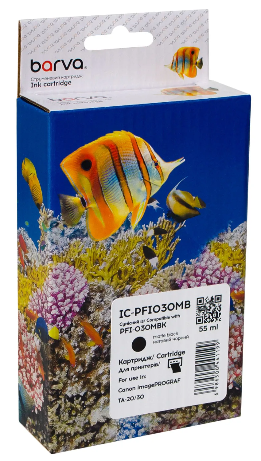 - Картридж совместимый Canon PFI-030MBK (3488C001) 55 мл, матовый черный Barva (IC-PFI030MB)