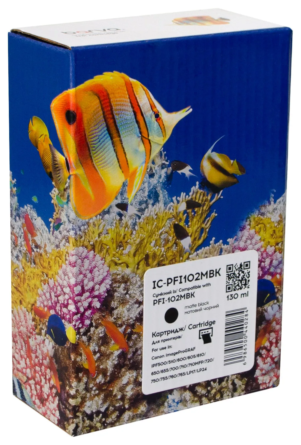Картридж совместимый Canon PFI-102MBK (0894B001) 130 мл, матовый черный Barva (IC-PFI102MBK), описание: