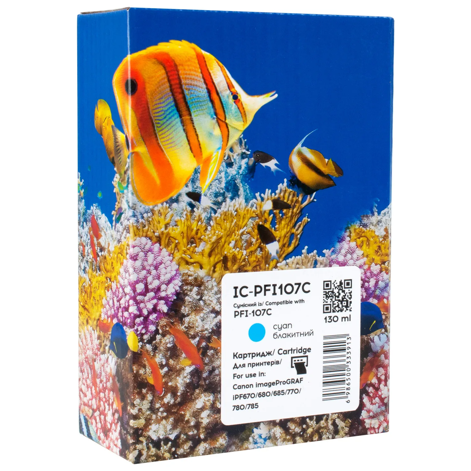 Картридж совместимый Canon PFI-107C (6706B001) 130 мл, голубой Barva (IC-PFI107C), описание: