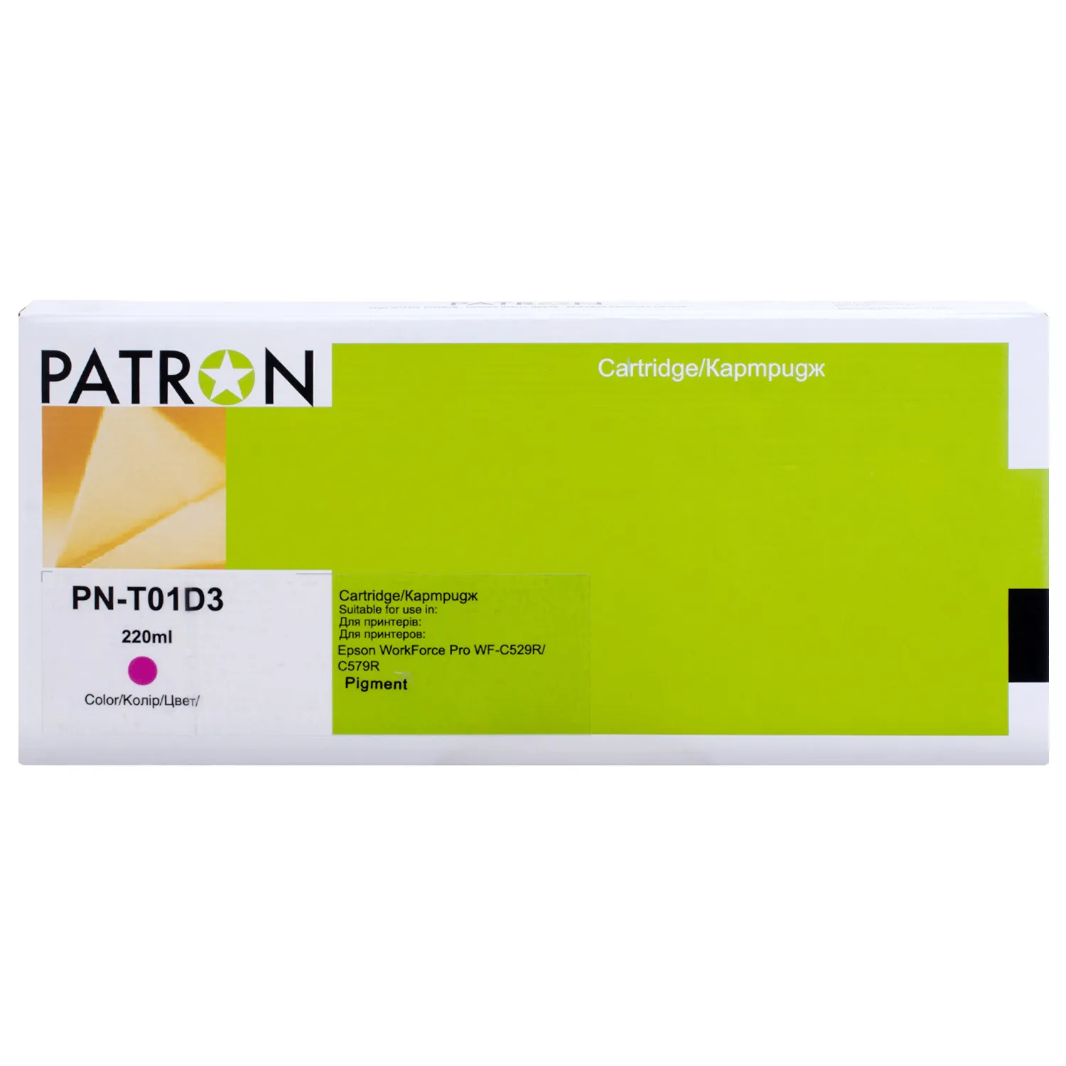 Струйный картридж C13T01D300 Patron имеет ресурс – 220 мл.