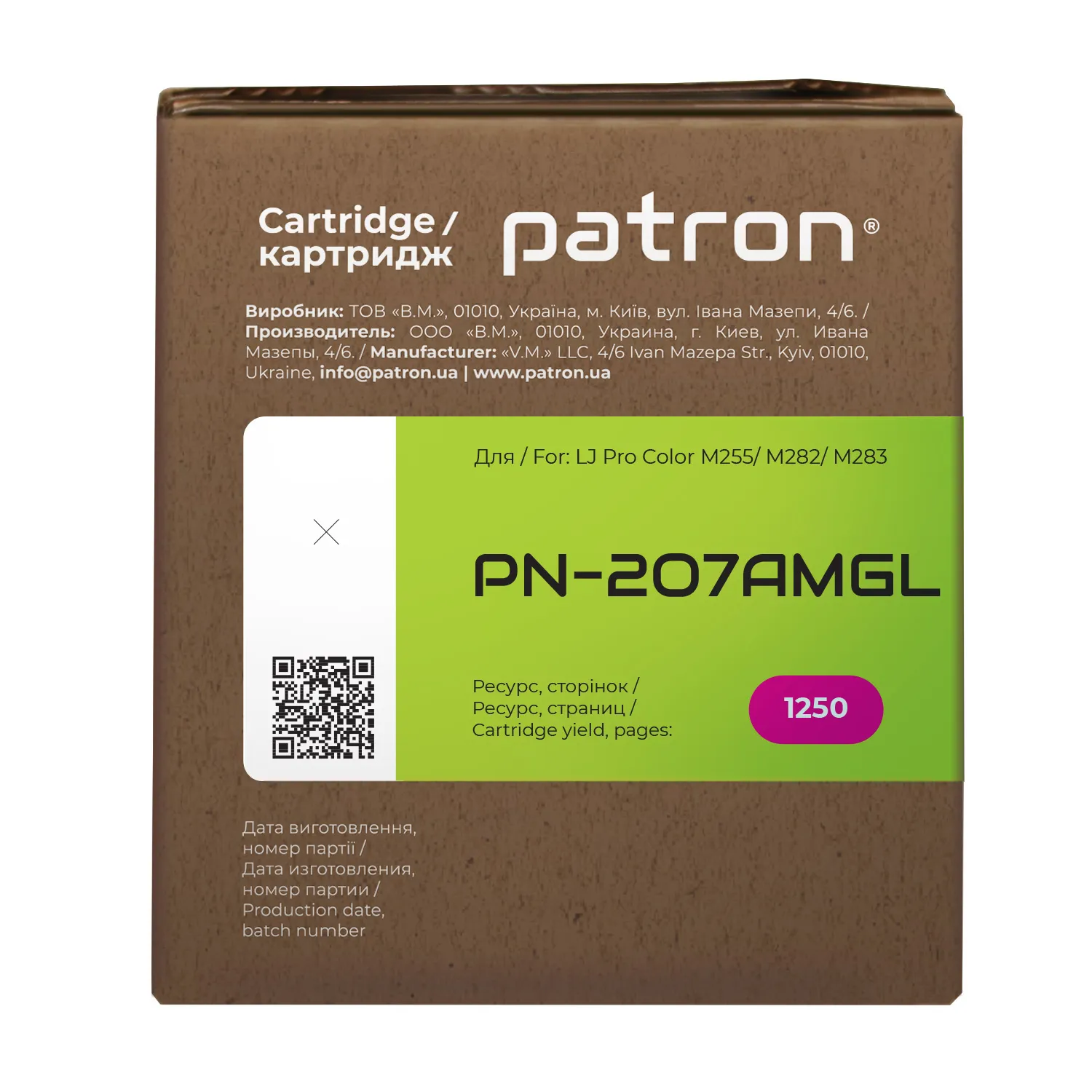 Мы позаботились о том, чтобы упаковка картриджа была не только экологичной, функциональной, имела минимально возможные физические размеры, но и содержала всю необходимую информацию. На зеленой этикетке находится информация о продукте, его совместимости с печатающими устройствами, номер партии, дата изготовления, контакты производителя, а также номер телефона бесплатной горячей линии для украинских потребителей.