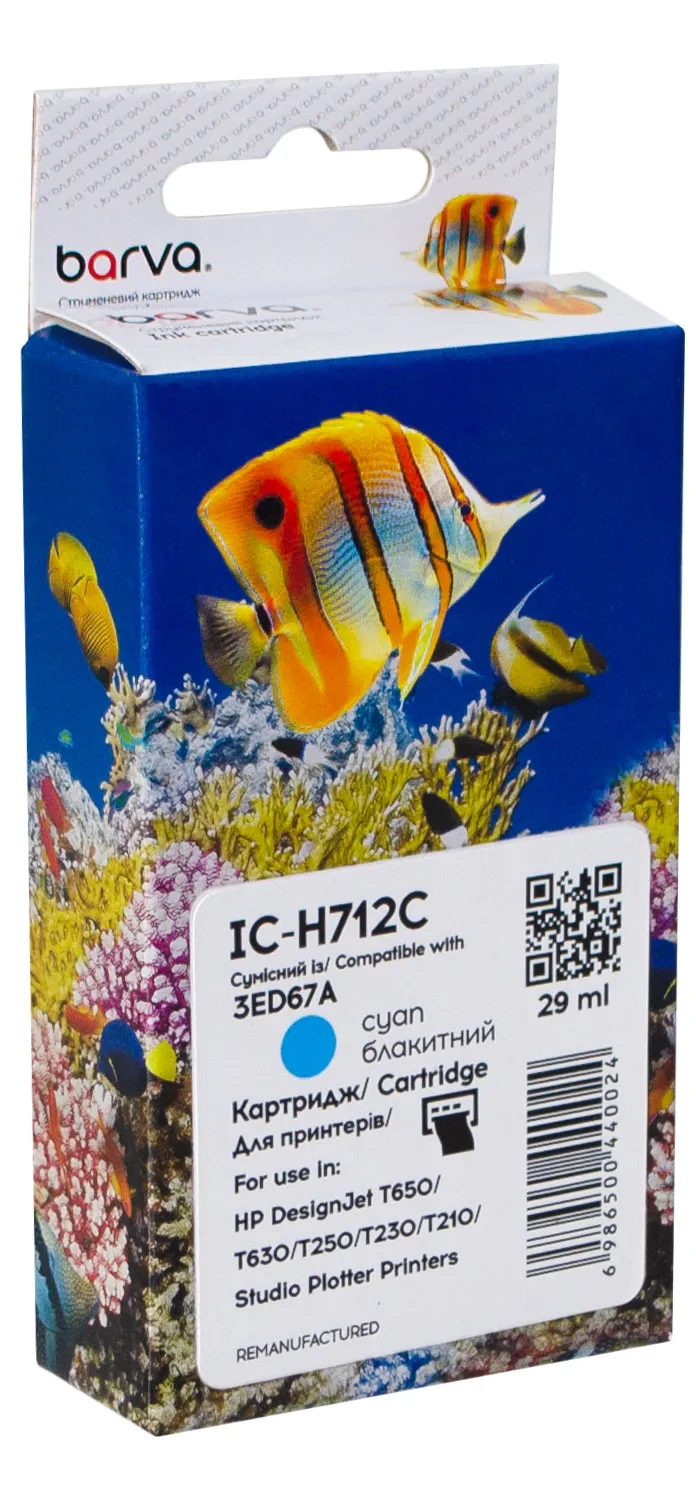 Картридж совместимый HP 712 (3ED67A/3ED77A) 29 мл, голубой Barva (IC-H712C) подходит для печати: