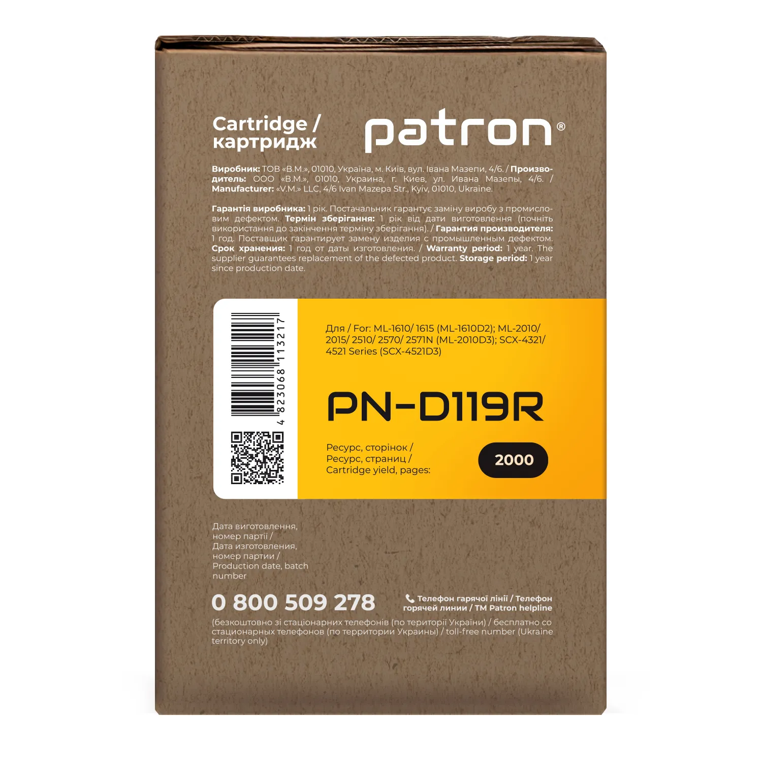 Украинская компания ТОВ «В. М.» производит картриджи Patron Extra с 2004 года. Это реальный продукт, произведенный в нашей стране.