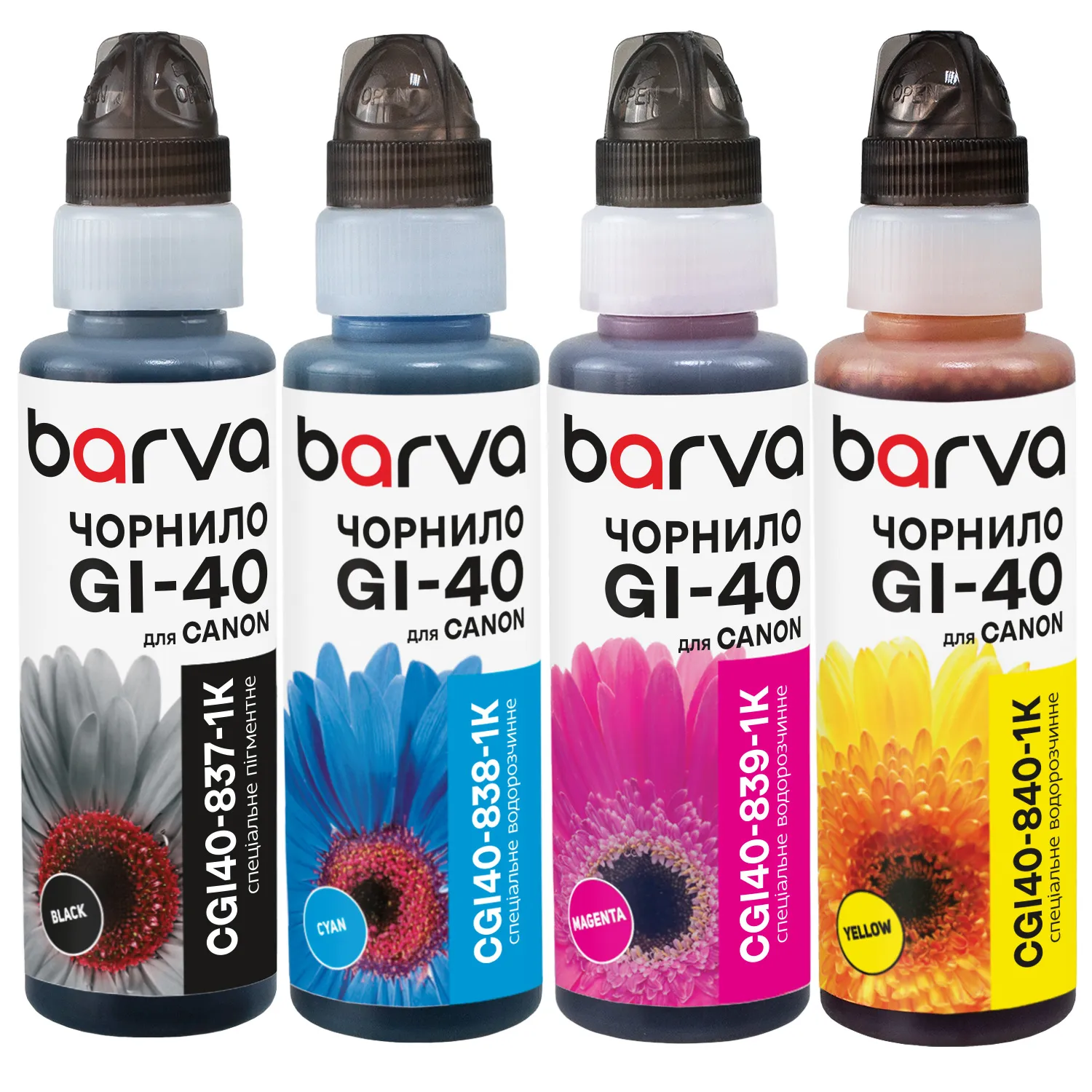 Вы можете купить Комплект чернил для Canon GI-40 специальные 4x100 мл, флакон OneKey (1K), пигментные/водорастворимые, BK/C/M/Y Barva (CGI40-1K-MP) в нашем интернет-магазине с доставкой по Киеву и всей Украине.