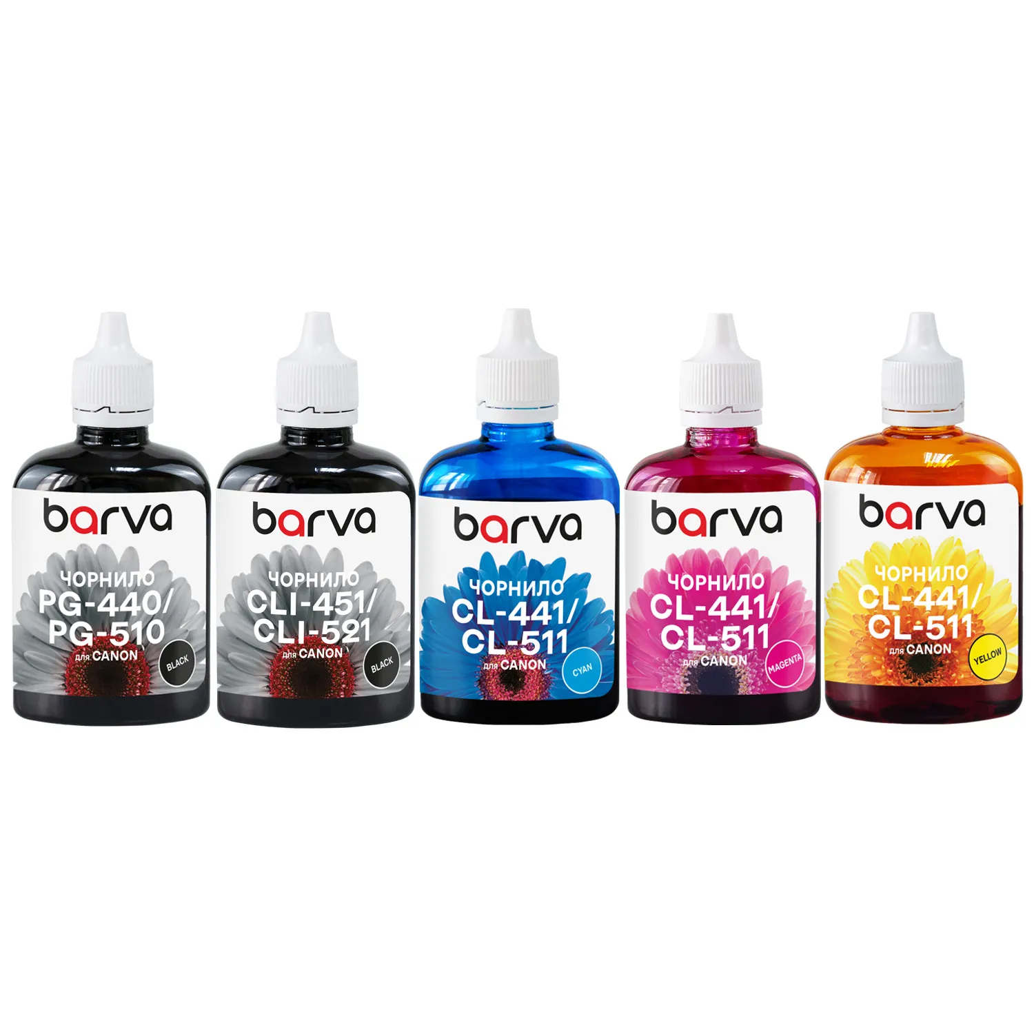 Данная краска для принтера Canon Barva имеет фасовку – 5x100 мл, которая имеет следующие особенности:
