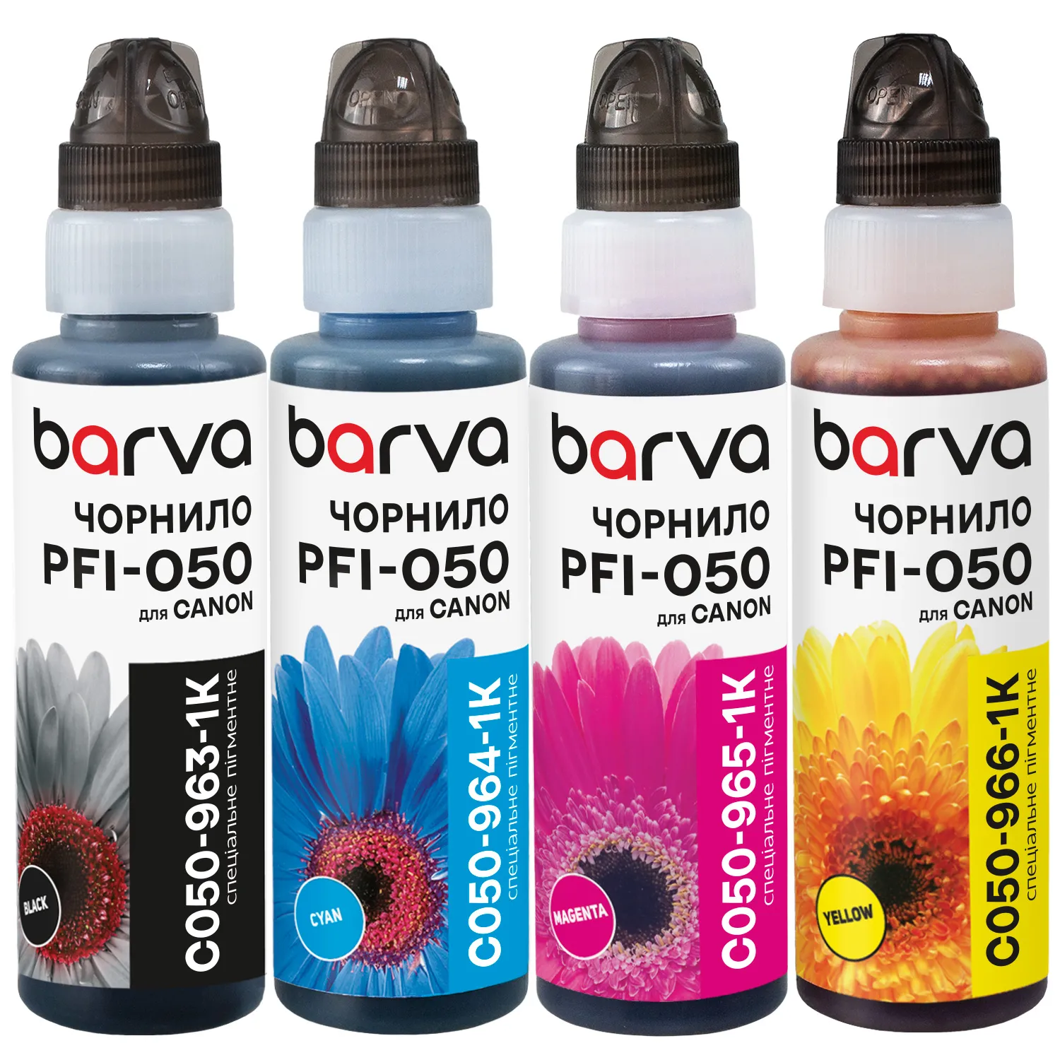 Вы можете купить Комплект чернил для Canon PFI-050 специальные 4x100 мл, флакон OneKey (1K), пигментные, BK/C/M/Y Barva (C050-1K-MP) в нашем интернет-магазине с доставкой по Киеву и всей Украине.