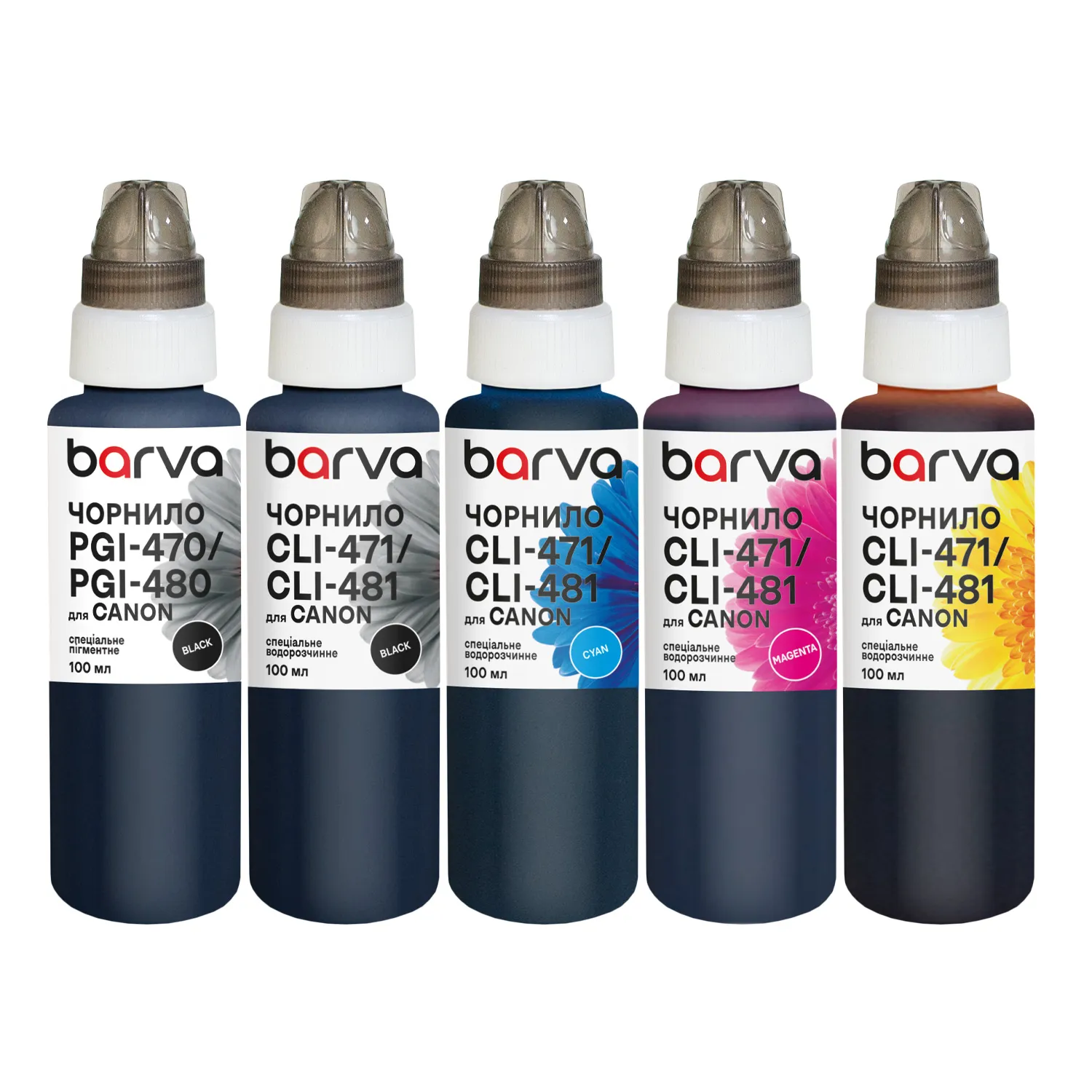 Комплект чернил для Canon PGI-470PGBK + CLI-471BK/C/M/Y специальные 5x100 мл, пигментные/водорастворимые, PGBK/BK/C/M/Y Barva (CPGI470-100-MP)