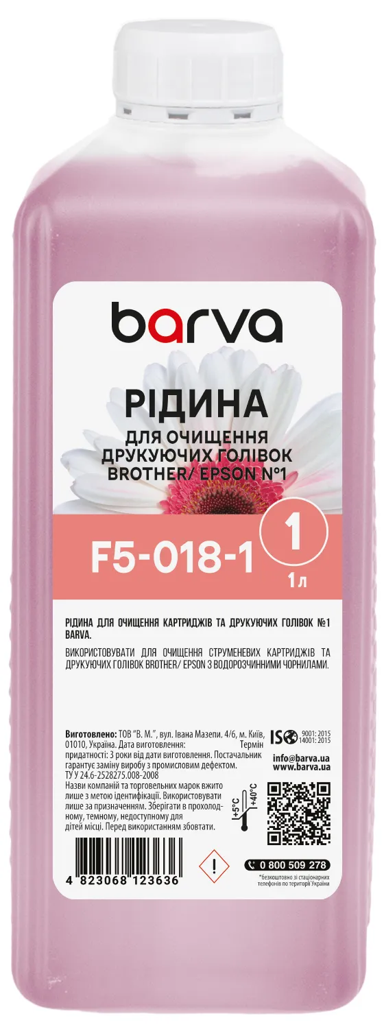 - Жидкость для промывки печатающих головок Brother/Epson №1 с водорастворимыми чернилами 1 л Barva (F5-018-1)