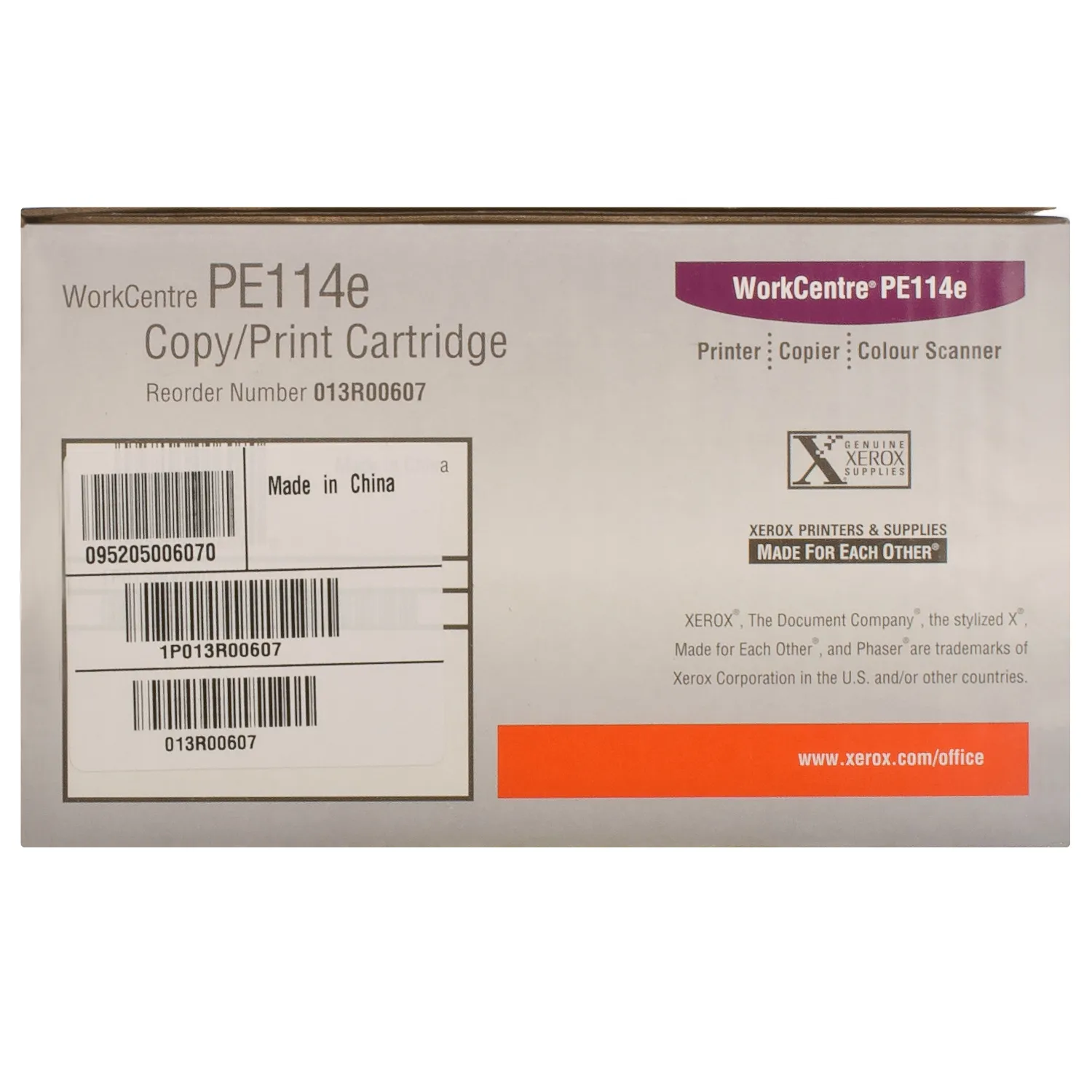 Картридж Xerox 013R00607 разработан и изготовлен производителем печатающего устройства, потому является идеальным выбором для безупречного качества отпечатков. Можно с уверенностью рассчитывать, что оригинальный картридж для лазерного принтера Xerox будет безотказно работать на протяжении всего ресурса – 3000 страниц. Тонер-картридж 013R00607 Xerox (WC PE114) относится к группе оригинальных расходных материалов, единственным минусом которых является высокая стоимость.