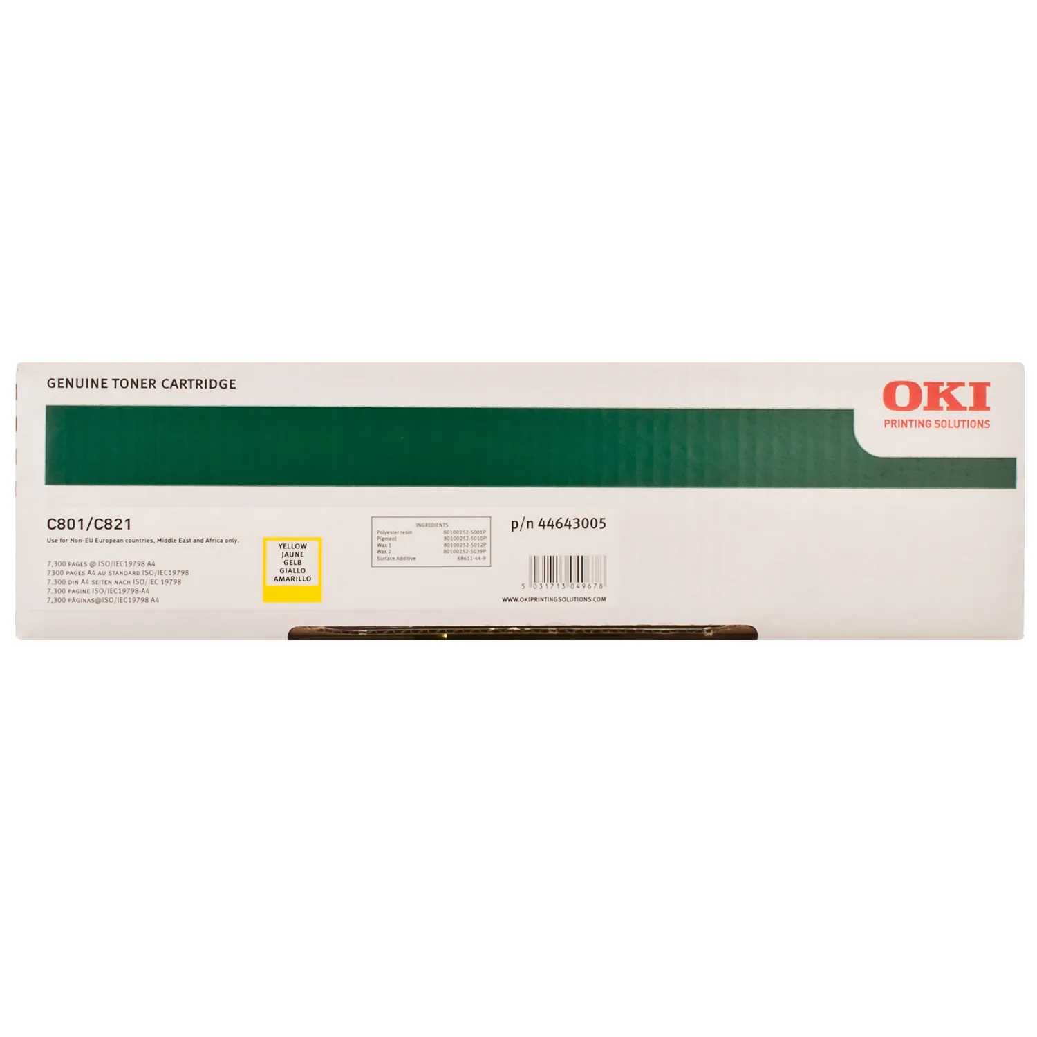 Ресурс тонер - картриджа C801-Y-N Oki составляет 7300 страниц.