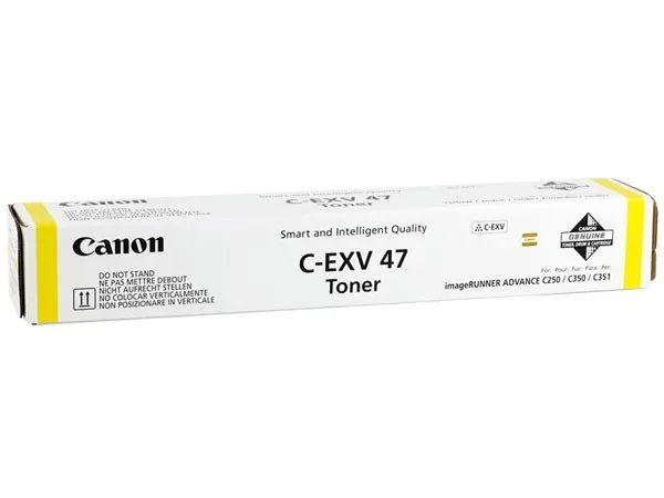 Оригінальний тонер - картридж C-EXV47-Y було розроблено компанією Canon, що є гарантією високої якості і забезпечує стабільну роботу протягом всього ресурсу – 21500 сторінок. Тонер-картридж C-EXV47 жовтий Canon (8519B002) відноситься до групи оригінальних витратних матеріалів, єдиним мінусом яких є висока вартість..