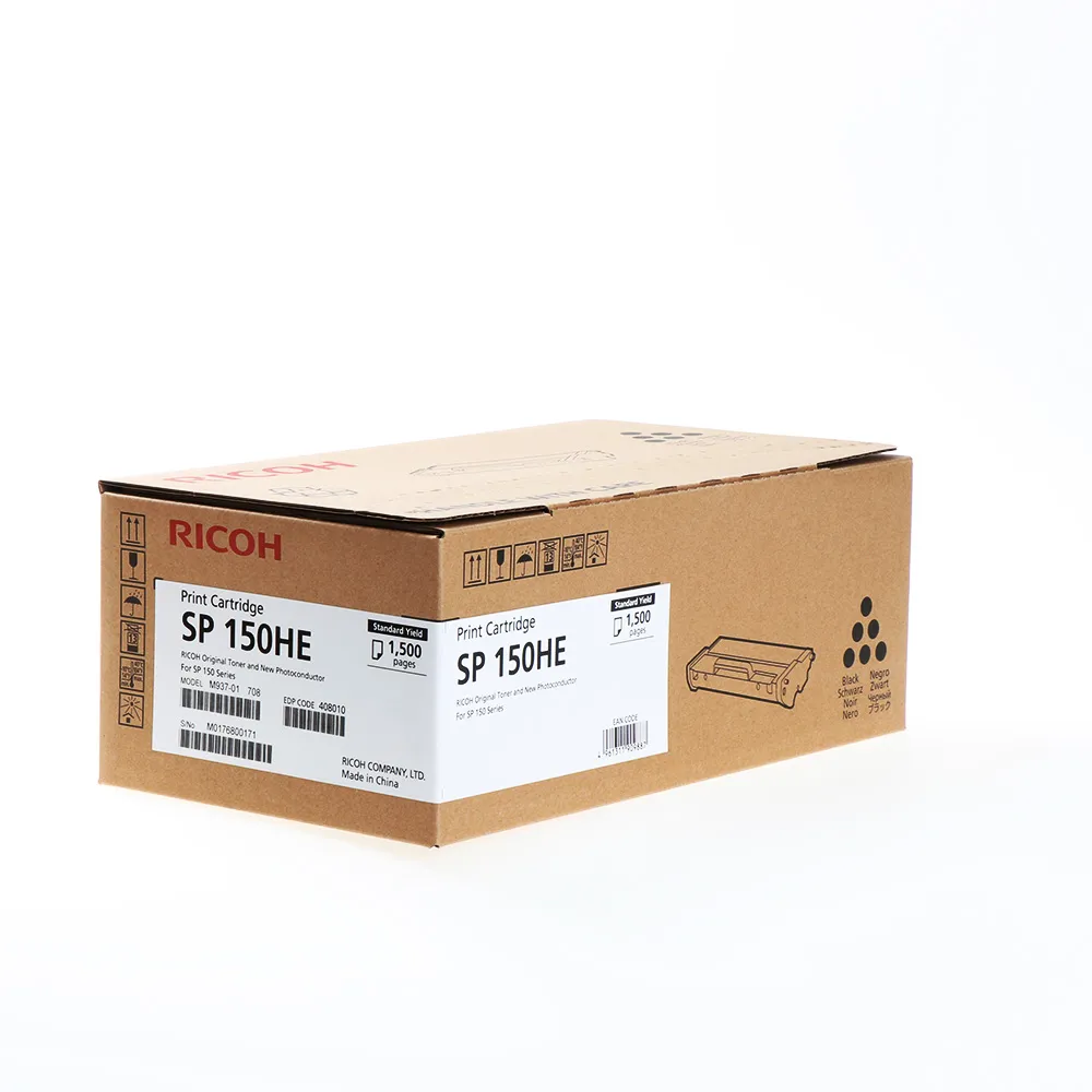 Тонер - картридж 150HE розроблений та виробляється компанією Ricoh, тому він є ідеальним вибором для бездоганної якості друку. Можна із впевненістю розраховувати, що оригінальний картридж для лазерного принтера Ricoh буде безвідмовно працювати протягом всього ресурсу – 1500 сторінок. Тонер-картридж SP 150HE Ricoh (408010) відноситься до групи оригінальних витратних матеріалів, єдиним мінусом яких є висока вартість.