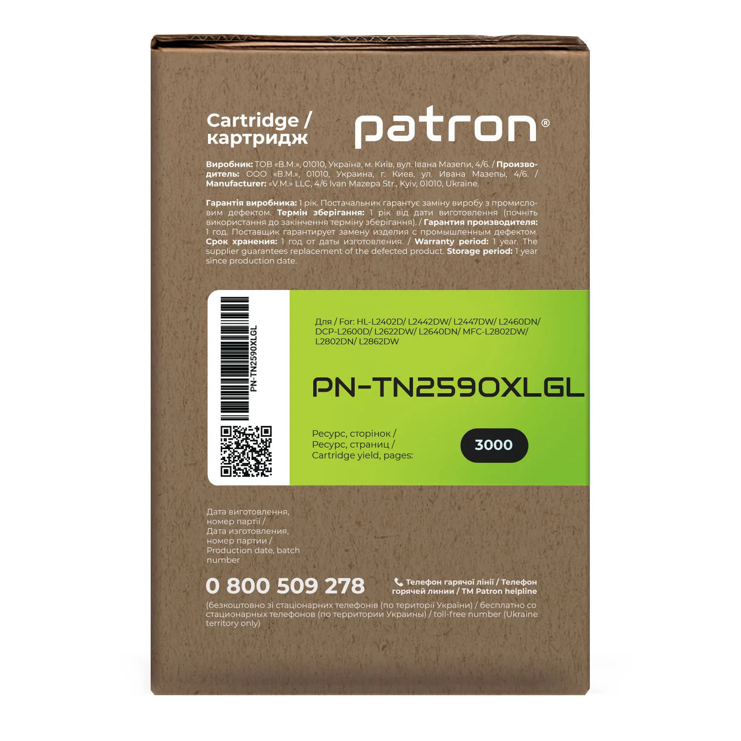 Тонер-картридж сумісний Brother TN-2590XL Green Label Patron (PN-TN2590XLGL)