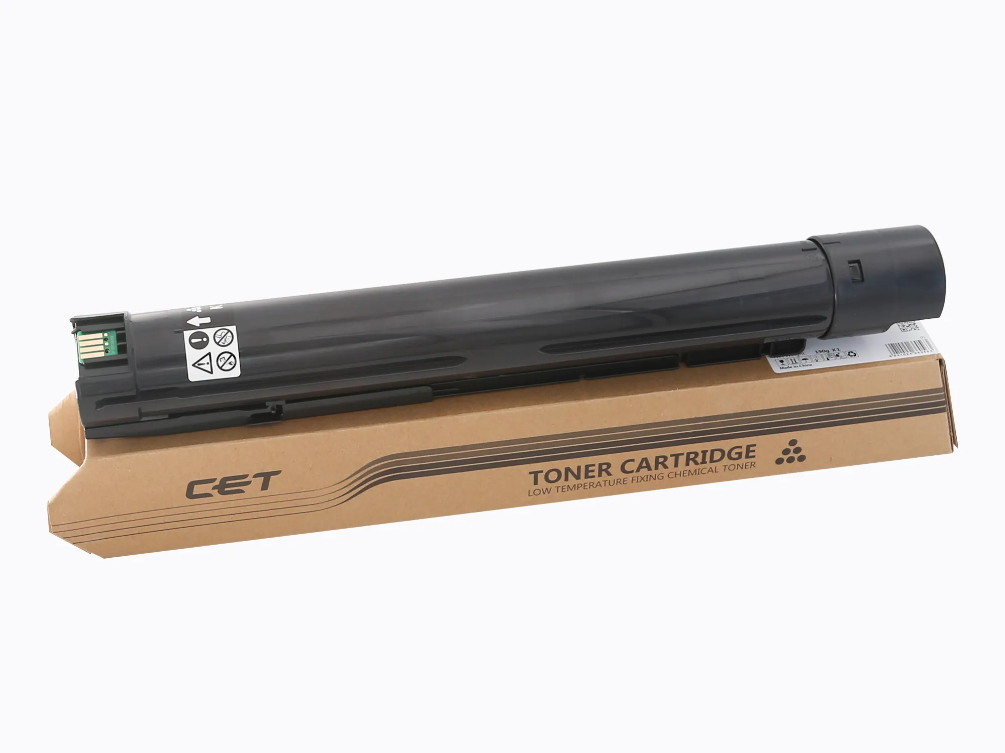 Витратні матеріали CET відносяться до роздільної системи – тонер-картридж (тонер-туба) + драм-картридж - в таких пристроях фотобарабан знаходиться в окремому блоці та замінюється окремо від тонер-картриджа, що є більш економним варіантом.